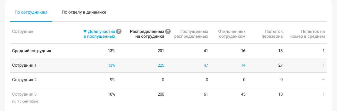 × Возможности отчета по отделу «Как пропустили» Отчет по пропущенным звонкам отдела поможет: выстраивать систему мотивации для сотрудников и быстро рассчитывать зарплату с KPI по пропущенным звонкам; оценить, как сотрудники обрабатывают пропущенные — как долго клиенты ждут перезвона и сколько клиентов осталось необработанными; разбираться, почему звонки в отдел остались без ответа и кто из сотрудников чаще их пропускает. Как считаются показатели отчета I. Анализируйте, почему были пропущены звонки и в каком объеме Количество принятых и пропущенных, а также их доля среди всех входящих покажет, насколько эффективно отдел работает с потоком входящих звонков на верхнем уровне. Более детально на этот вопрос ответят такие показатели, как: число уникальных пропущенных — сколько реальных клиентов среди всего объема пропущенных звонков; повторных пропущенных — сколько было попыток клиентов повторно дозвониться до отдела; среднее ожидание клиентов — как долго в среднем клиенты ждут ответ отдела (пока ответит сотрудник или клиент сбросит звонок); причины пропуска входящих — какая доля потенциальных клиентов была упущена из-за некачественных действий сотрудников, недостаточности ресурсов в отделе или текущего расписания работы (если клиенты звонят тогда, когда отдел не работает). Если чаще пропускают сотрудники, то подумайте о введении KPI по пропущенным и отслеживайте их по каждому сотруднику. Если больше звонков пропущено из-за того, что сотрудники были на других звонках, значит ваш отдел перегружен и нужно увеличить число сотрудников на смене. Если пропущенные звонки случаются в нерабочее время — стоит пересмотреть расписание или настройки распределения, например, назначить дежурного. II. Оценивайте, как отдел обрабатывает пропущенные от клиентов По уникальным пропущенным в отчете можно отслеживать статусы перезвона, чтобы реагировать на текущую ситуацию: Не перезвонили — какое количество потенциальных клиентов мы упустили, не перезвонив по пропущенным в течение календарного дня. Если анализируете отчет за вчера или сегодня — просто перейдите в историю звонков, чтобы получить список номеров клиентов и поставить сотрудникам задачу на обзвон этого списка; Перезвонили вне отдела — клиент перезвонил и дозвонился сам или этим клиентам перезвонили, но не сотрудники вашего отдела; Перезвонил отдел— какую долю клиентов с пропущенными звонками обработали сотрудники вашего отдела; Средняя скорость перезвона — с какой скоростью, в среднем, ваши сотрудники перезванивают на пропущенные и какая доля звонков обработана быстрее. III. Разберитесь, кто пропускает больше звонков Оцените, как каждый из сотрудников отдела пропускал и обрабатывал пропущенные: Доля участия в пропущенных отделом — насколько сотрудник причастен к пропущенным звонкам отдела и на какую долю пропущенных мог бы ответить, но не ответил; Всего звонков, распределенных на сотрудника — насколько часто звонки распределялись на сотрудника. Если есть явные перекосы по количеству распределенных звонков между сотрудниками, надо понять причину. Возможно, некорректно настроено распределение звонков на отдел или сотрудник часто находится в режиме “не беспокоить” в рабочее время; Пропущенных звонков, распределенных на сотрудника — как часто сотрудник пропус